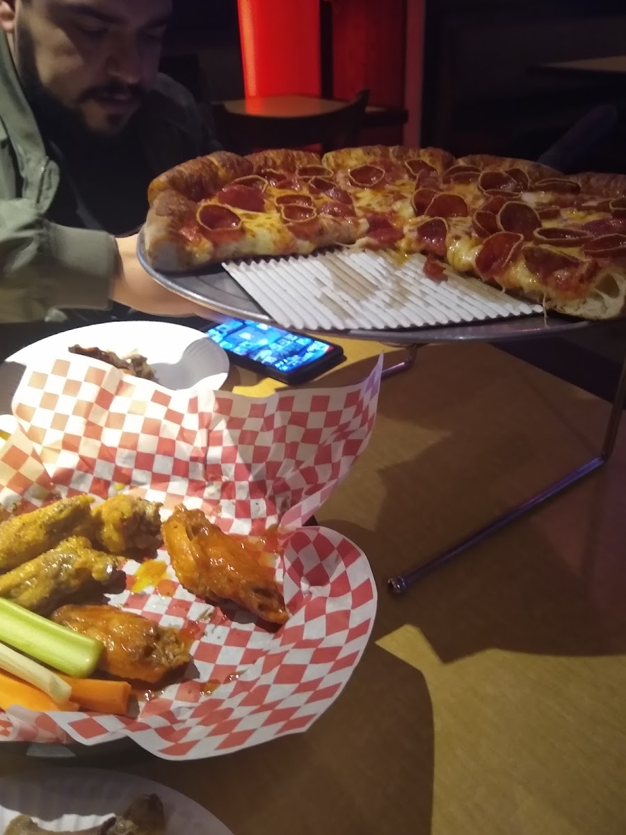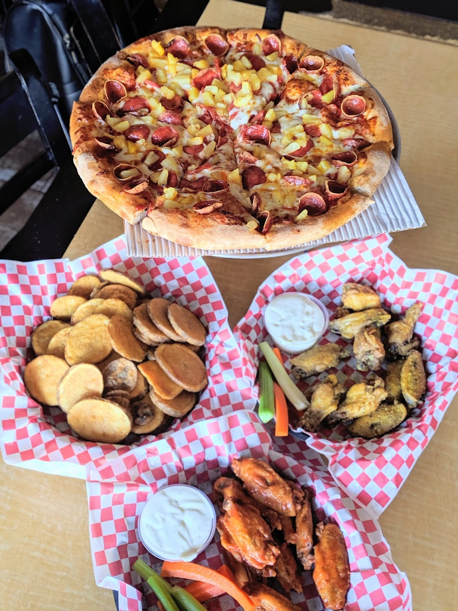 Hands down one of my top places to get a good pizza.Parking lot is small but parking is rarely an issue. They offer a good pricing on their pizzas,sides and family deals. My family and friends like gathering here and enjoying the pizza here. They also have big screens and usually have the game/s up.
